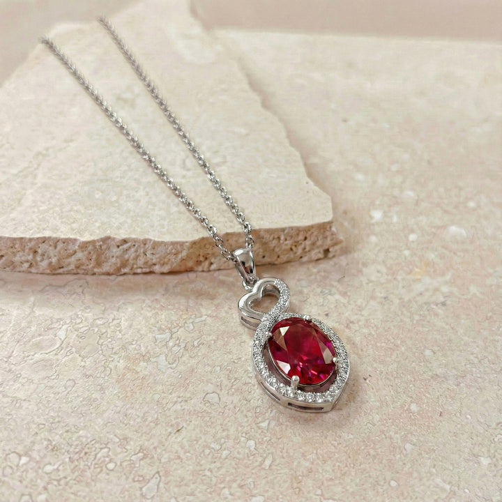 Ruby Oval Infinity Twist Heart Pendant Necklace in 925 Sterling Silver 1.2ct
