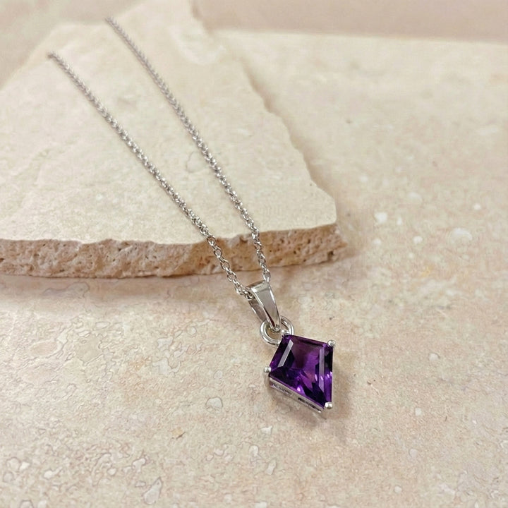 Natural Amethyst Kite Solitaire Pendant Necklace in 925 Sterling Silver 1.4ct