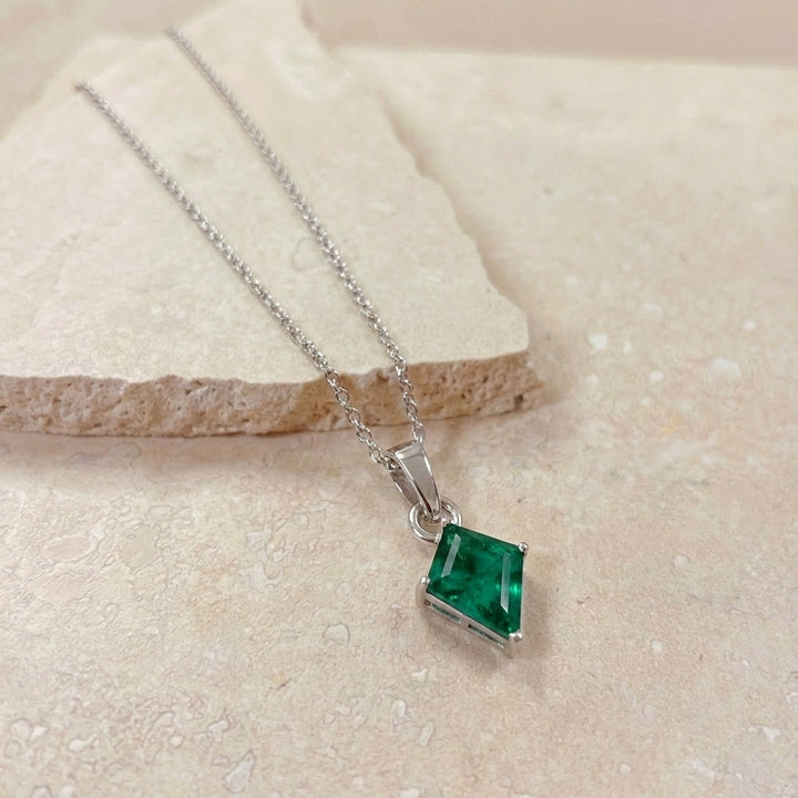 Emerald Kite Solitaire Pendant Necklace in 925 Sterling Silver 1.4ct