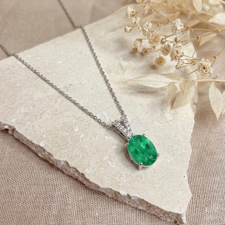 Emerald Solitaire Pendant Necklace in 925 Sterling Silver 1.2ct