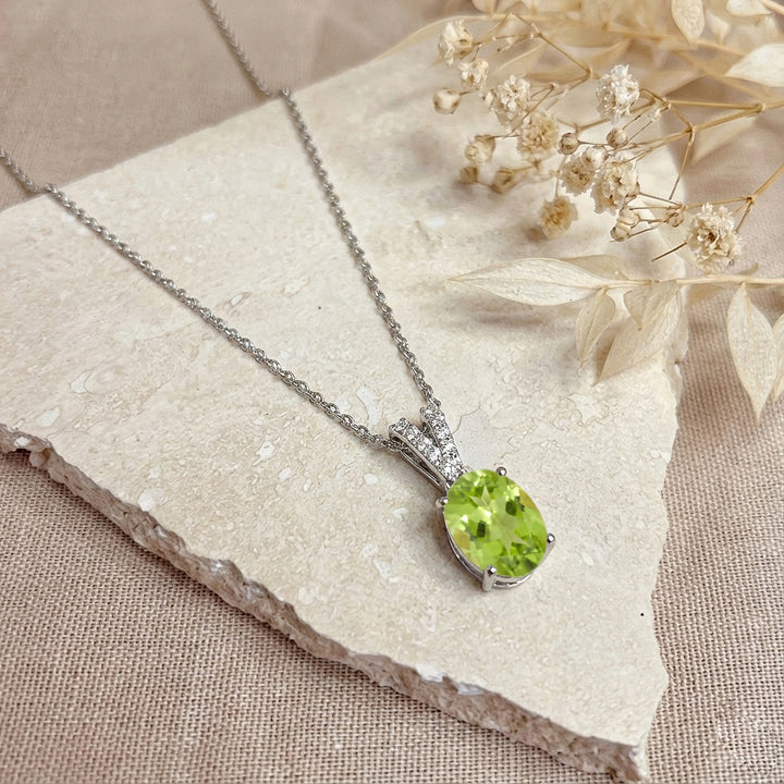 Natural Peridot Solitaire Pendant Necklace in 925 Sterling Silver 1.2ct