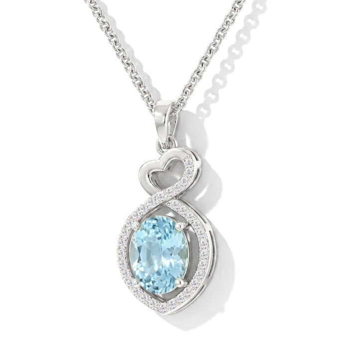 Aquamarine Oval Infinity Twist Heart Pendant Necklace in 925 Sterling Silver 1.2ct