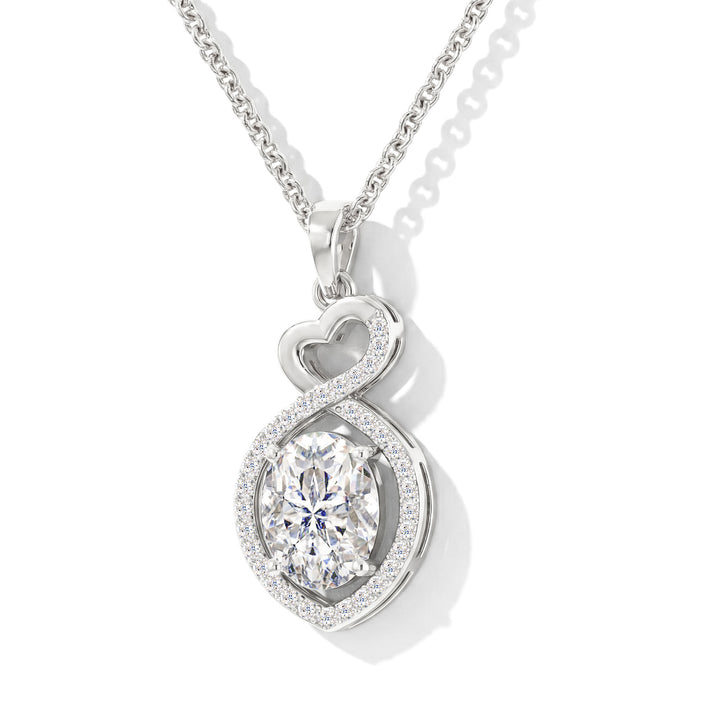Cubic Zirconia Oval Infinity Twist Heart Pendant Necklace in 925 Sterling Silver 1.2ct