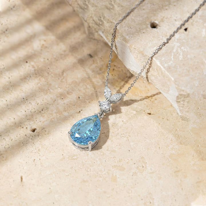 Aquamarine Pear Teardrop Pendant Necklace in 925 Sterling Silver 1.7ct
