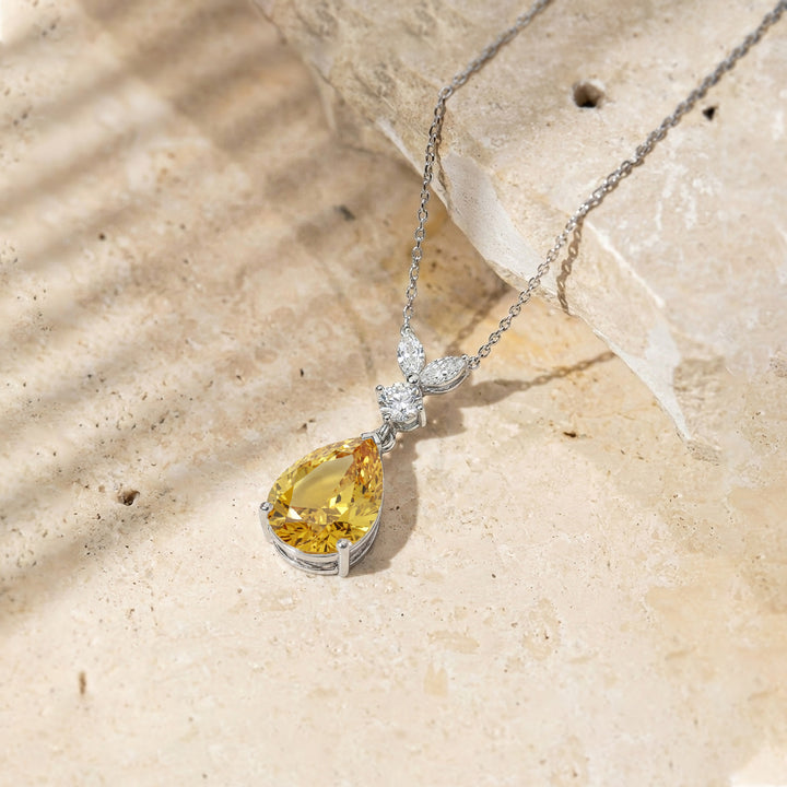 Natural Citrine Pear Teardrop Pendant Necklace in 925 Sterling Silver 1.7ct