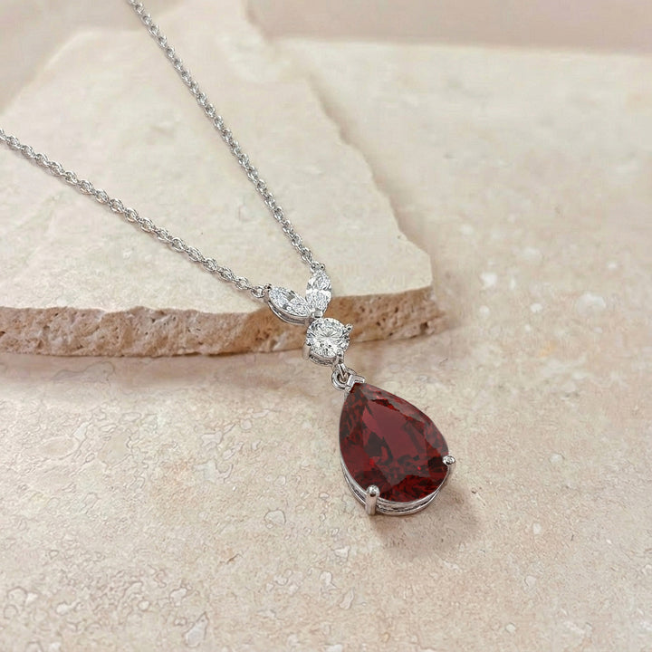 Ruby Pear Teardrop Pendant Necklace in 925 Sterling Silver 1.7ct