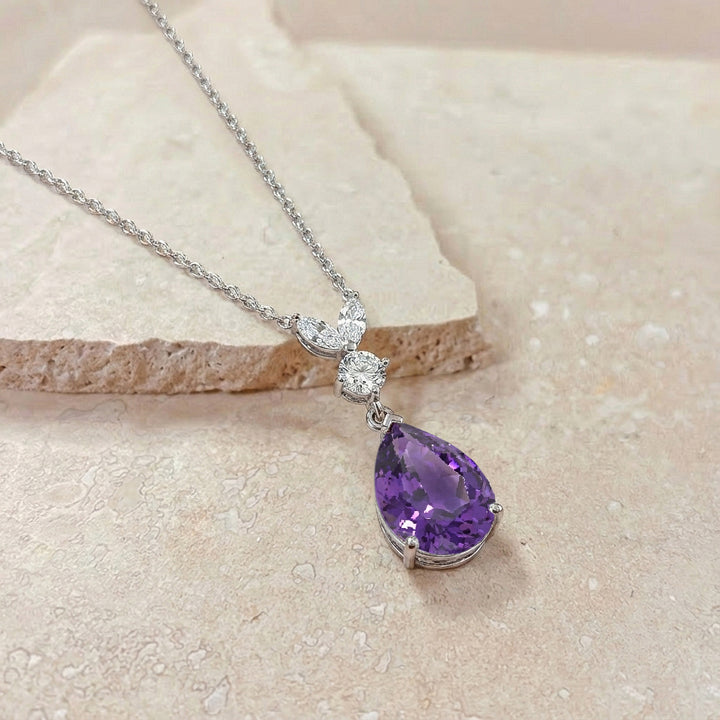 Amethyst Pear Teardrop Pendant Necklace in 925 Sterling Silver 1.7ct