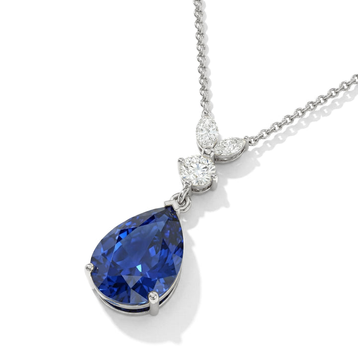 Blue Sapphire Pear Teardrop Pendant Necklace in 925 Sterling Silver 1.7ct