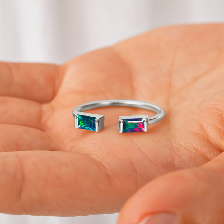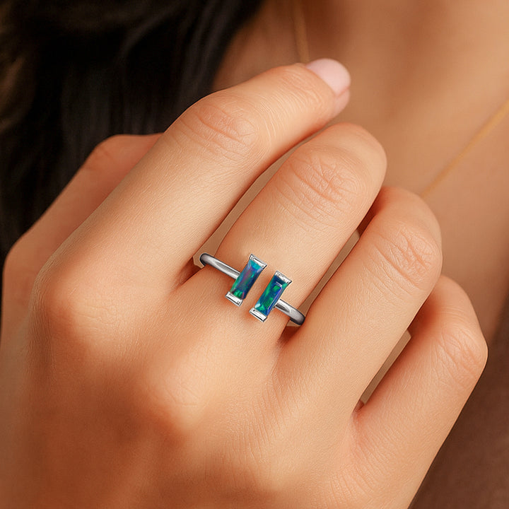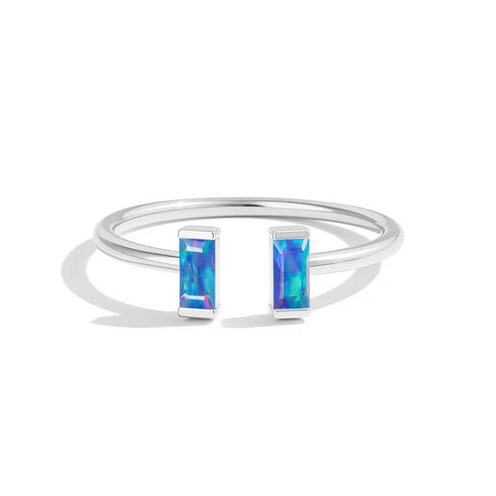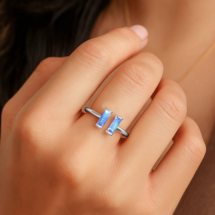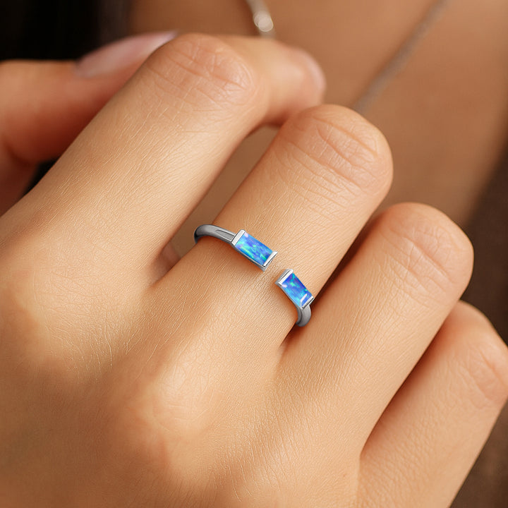 Natural Blue Opal Baguette Open Ring in 925 Sterling Silver 5x2mm 0.50ct