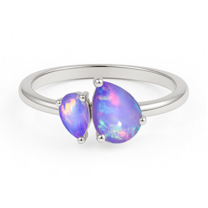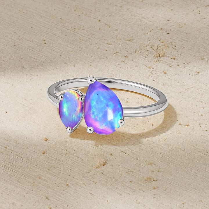 Double Pear Cut Lavender Opal Ring in 925 Silver Luxury Opal Jewelry
