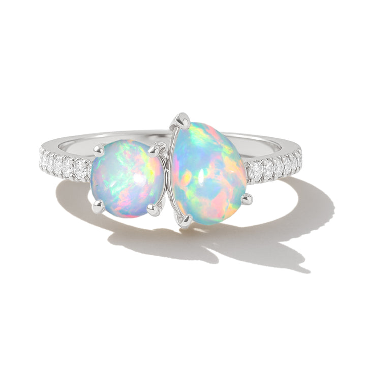 2-Stone White Opal Ring in 925 Sterling Silver Pear & Round, 1.70 CRT