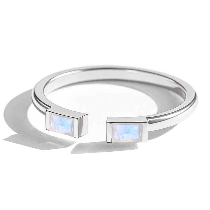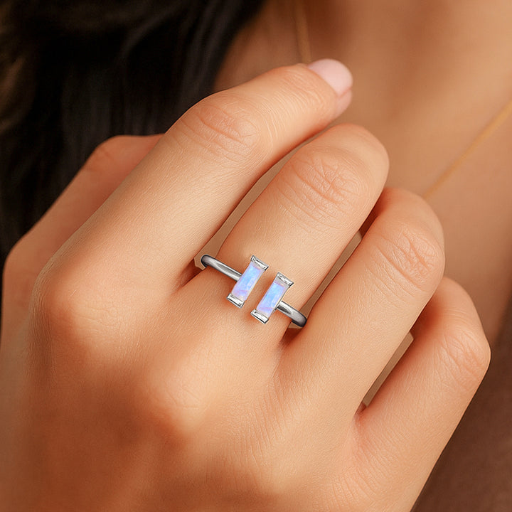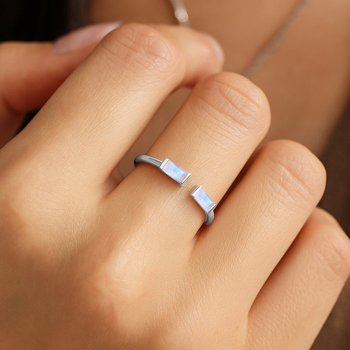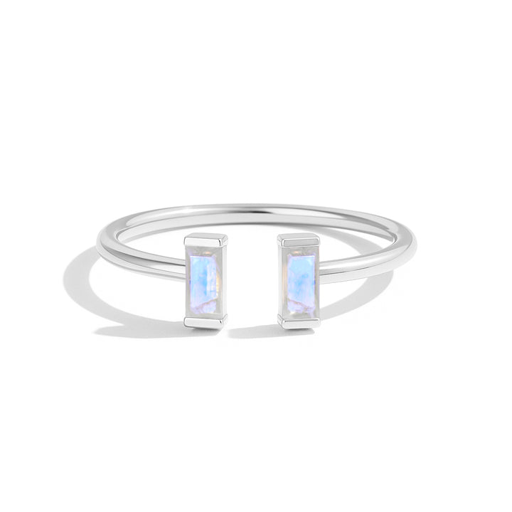 Natural Moonstone Baguette Open Ring in 925 Sterling Silver 5x2mm 0.80ct