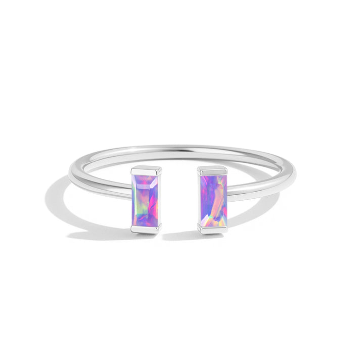 Natural Lavender Opal Baguette Open Ring in 925 Sterling Silver 5x2mm 0.50ct