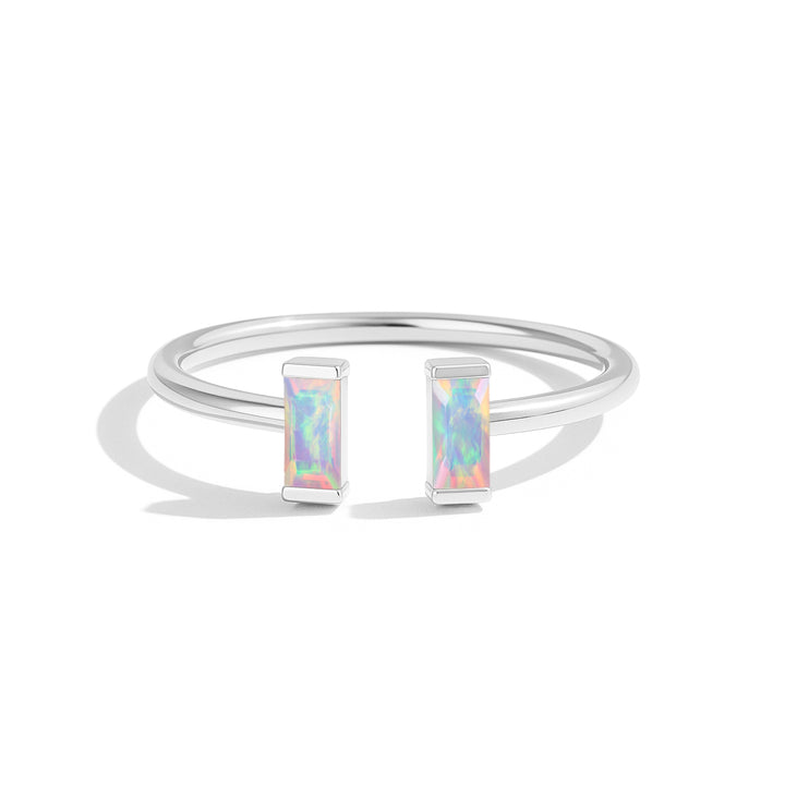 Natural White Opal Baguette Open Ring in 925 Sterling Silver 5x2mm 0.50ct