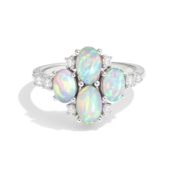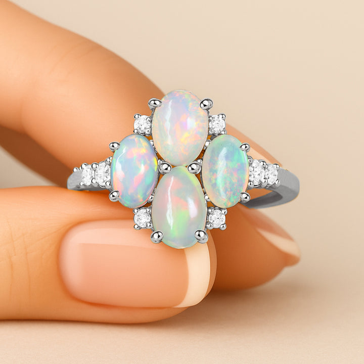 Oval White Opal Cluster Ring in Sterling Silver Elegant 6x4mm Gem