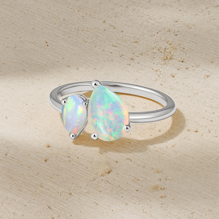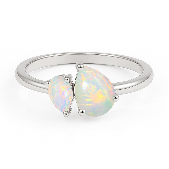 Double Pear Cut White Opal Ring in 925 Silver Luxury Opal Jewelry