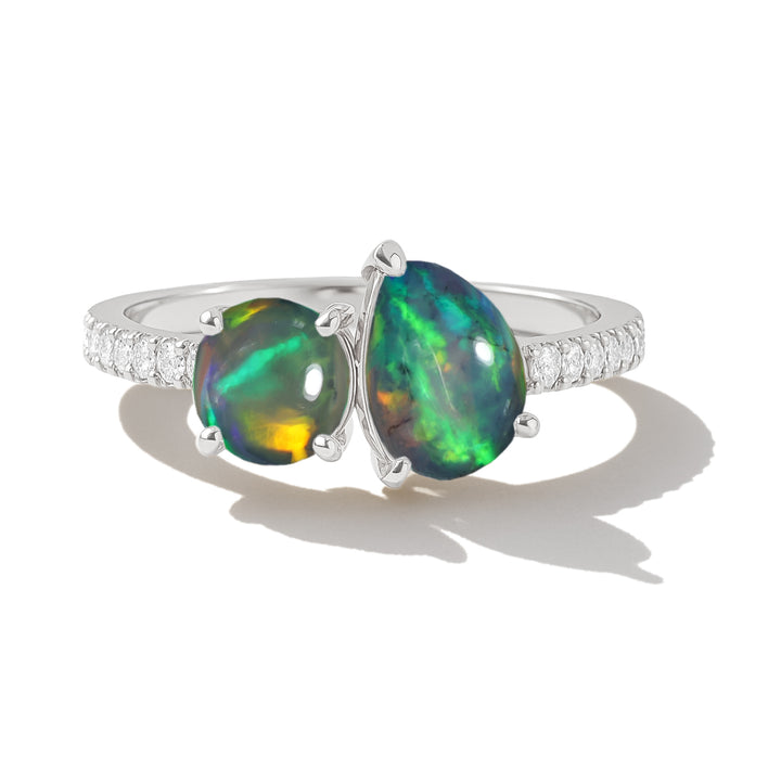 Double Pear Cut Black Opal Ring in 925 Silver Luxury Opal Jewelry
