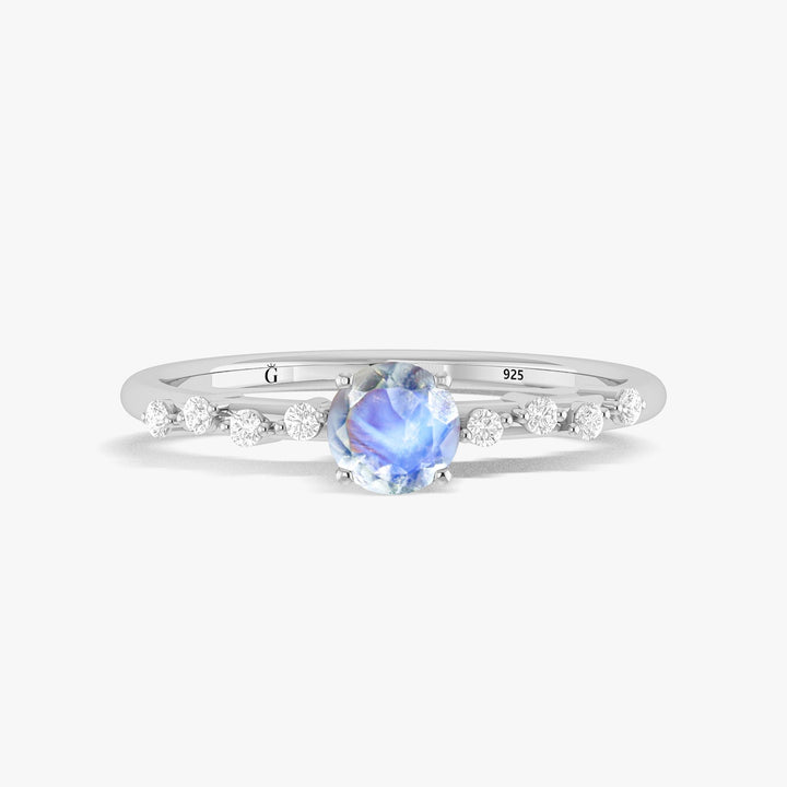 Natural Moonstone ROUND STONE MINIMALIST SOLITAIRE WITH ACCENTS RING