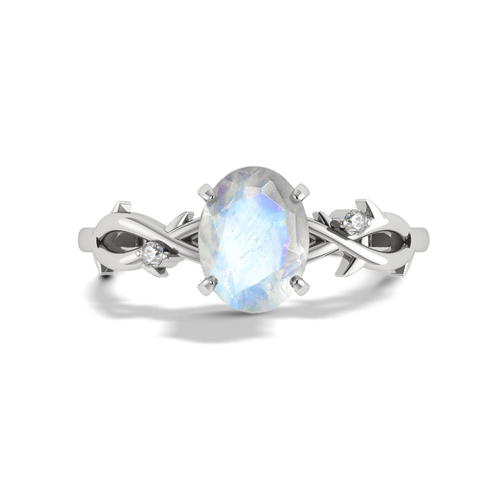 Natural Moonstone with Side Stone Crossover Solitaire Ring