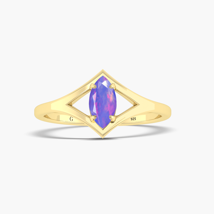 Dainty Marquise Lavender fire Ethiopian opal ring