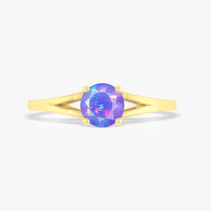 Dainty round lavender fire minimalist opal ring