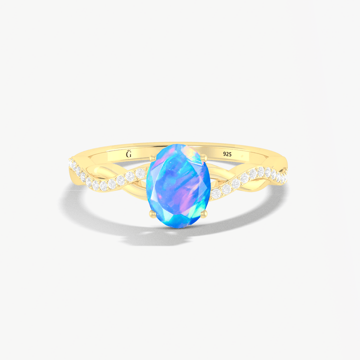 Natural Blue fire dainty oval Ethiopian opal Handcrafted ring