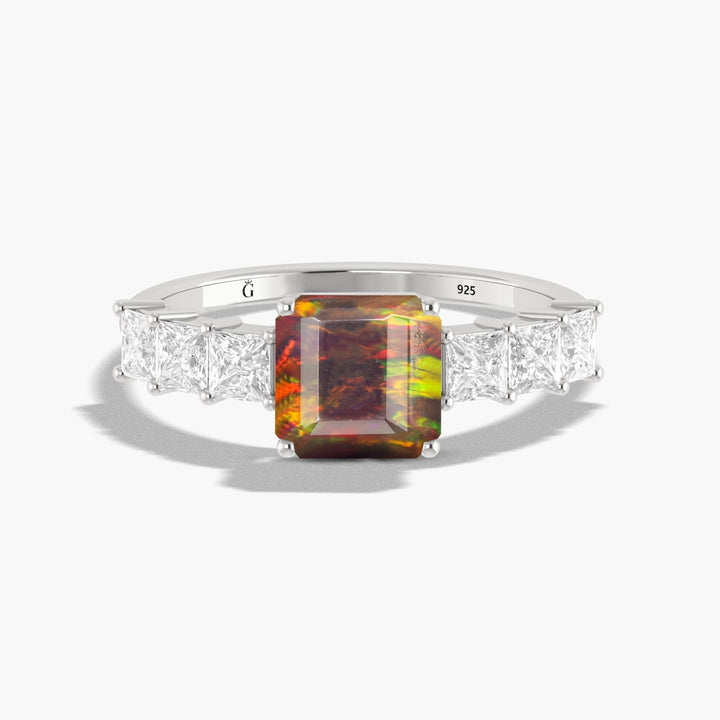 Natural White Opal Wedding Ring - Octagon Triplet Style