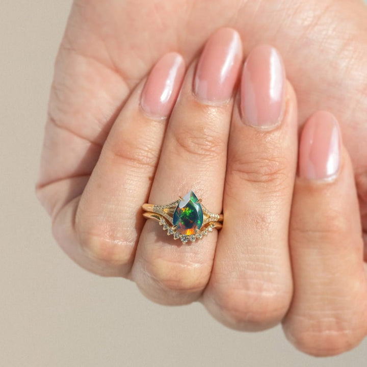 Natural Black Opal Ring - Pear Shape 1.2 Carat