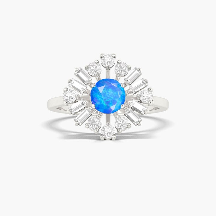 Blue Opal Halo Ring with White Zircon
