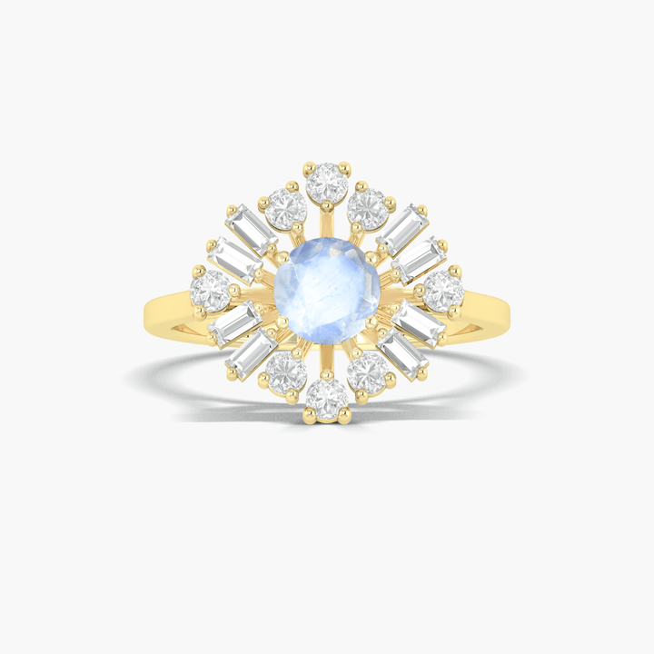 Natural Moonstone Halo Ring with Zircon Accents