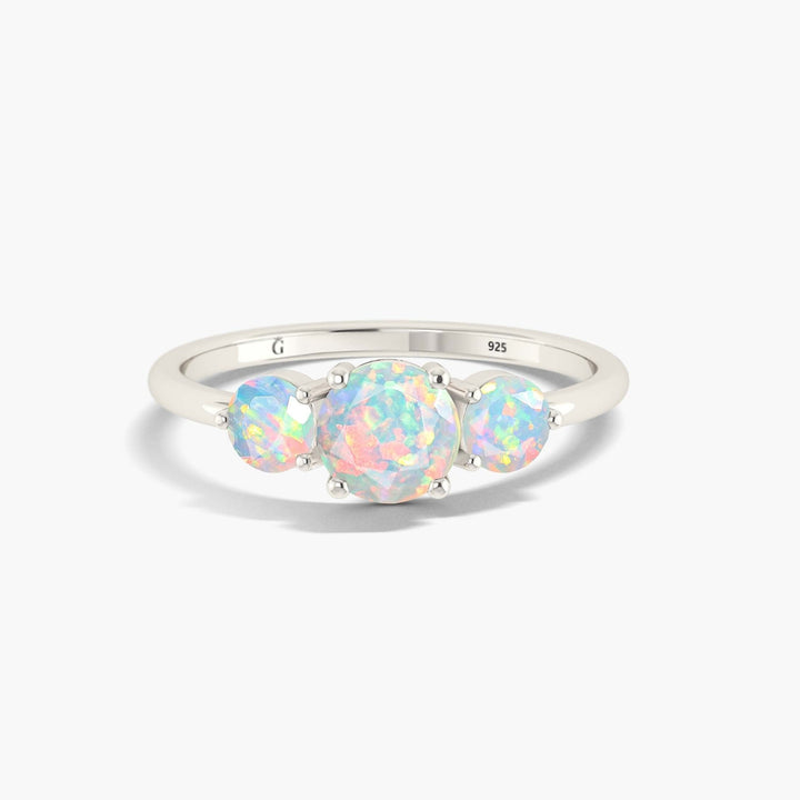 White Opal Three Stone Engagement Ring