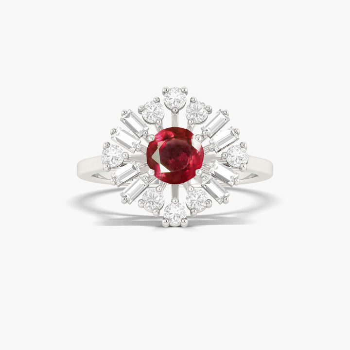 6MM Natural Ruby Halo Ring with Zircon