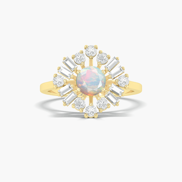 White Opal Halo Ring with Zircon - 925 Sterling Silver
