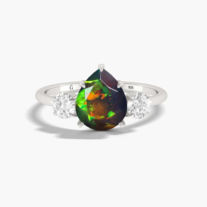 White Opal Statement Ring with Zircon Pear Shape