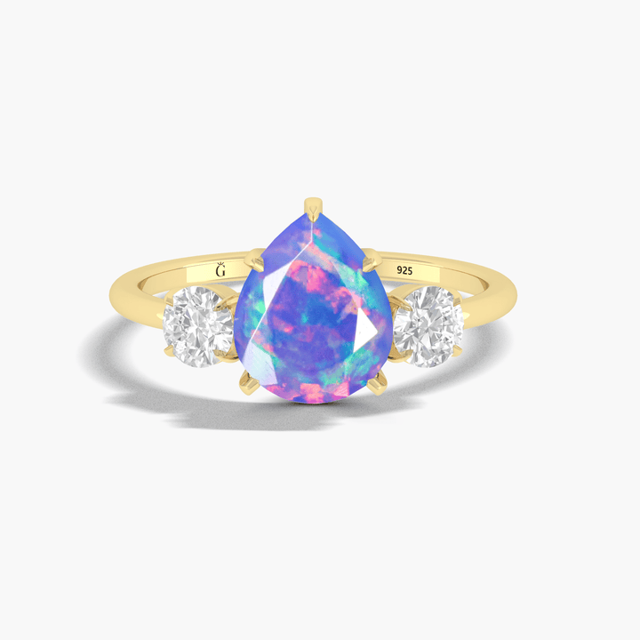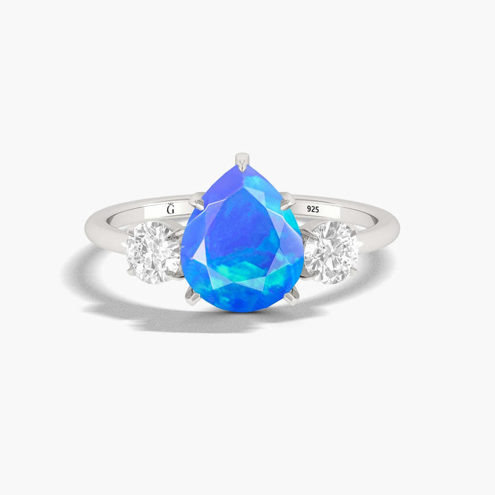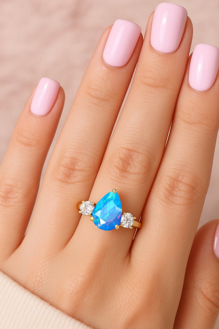 Ethiopian Blue Opal Ring - Three Stone Engagement