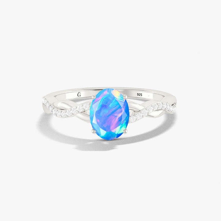 Blue Opal Crossover Ring with 8X6 MM Oval Stone