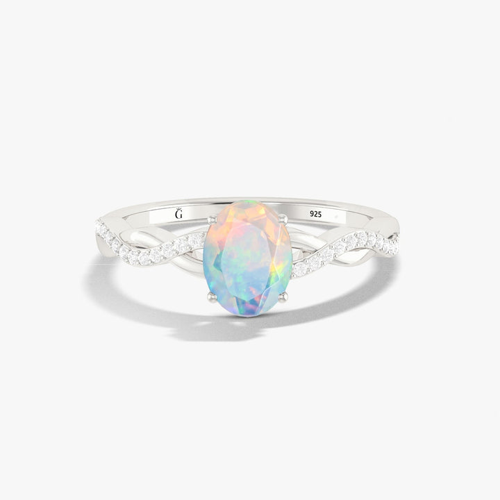 Natural White Opal Crossover Ring 8X6 MM