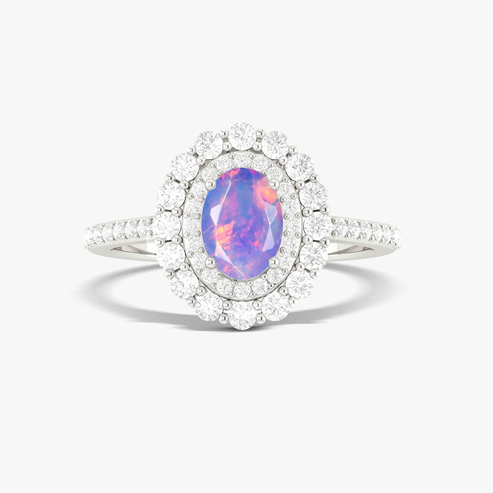 Oval Opal Halo Wedding Ring - Lavender Elegance
