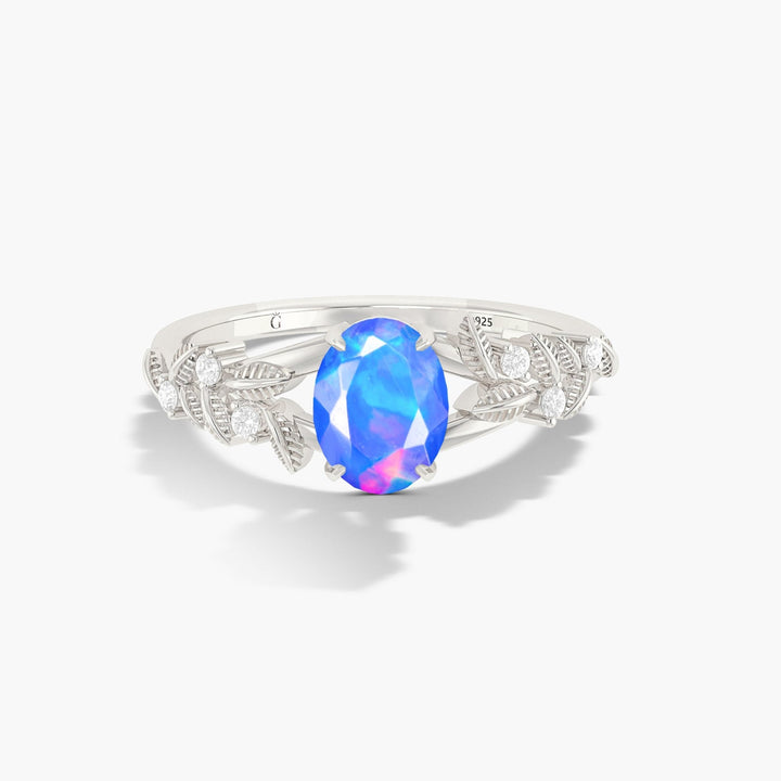 Natural Blue Opal Leaf Solitaire Ring with 925 Silver