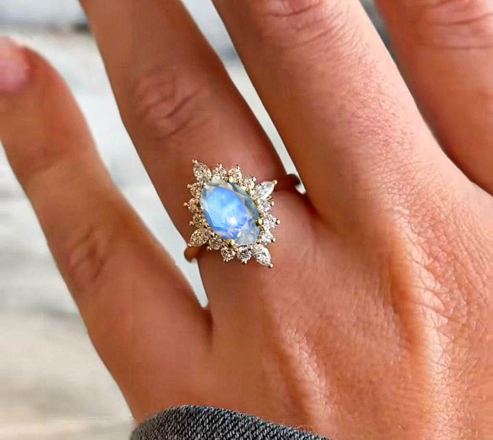 Blue Opal Zircon Wedding Ring with Designer Appeal