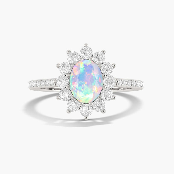 White Opal Engagement Ring with 6x4 MM Oval Gem