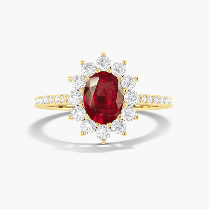 Natural Ruby Halo Ring in Sterling Silver Floral Design