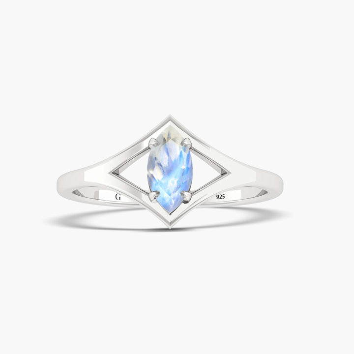 8X4 MM Moonstone Solitaire Ring in Sterling Silver