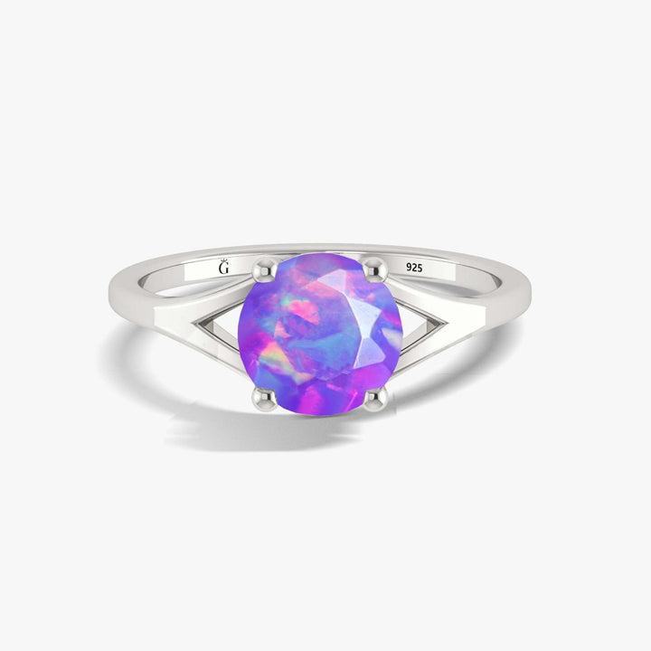 Lavender Opal Solitaire Ring - 6mm Faceted Gemstone