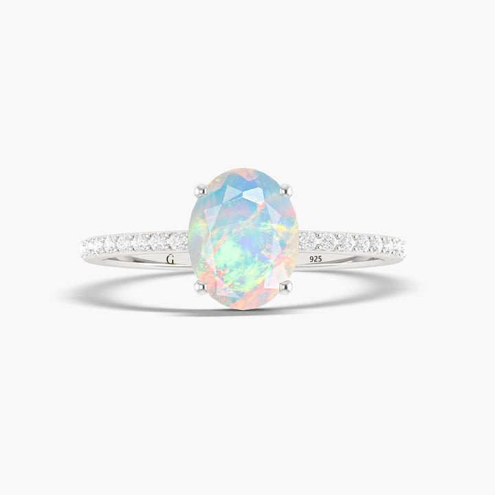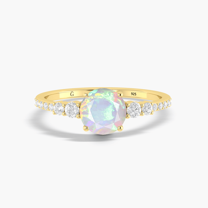 7MM Round Shape White Opal Wedding Ring with Zircon