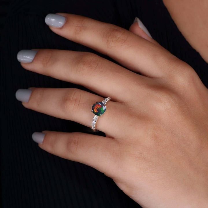 Black Opal Solitaire Wedding Ring with Zircon