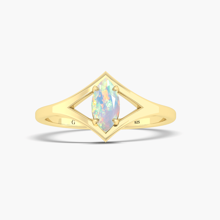 Natural White Opal Ring - Marquise Cut Solitaire