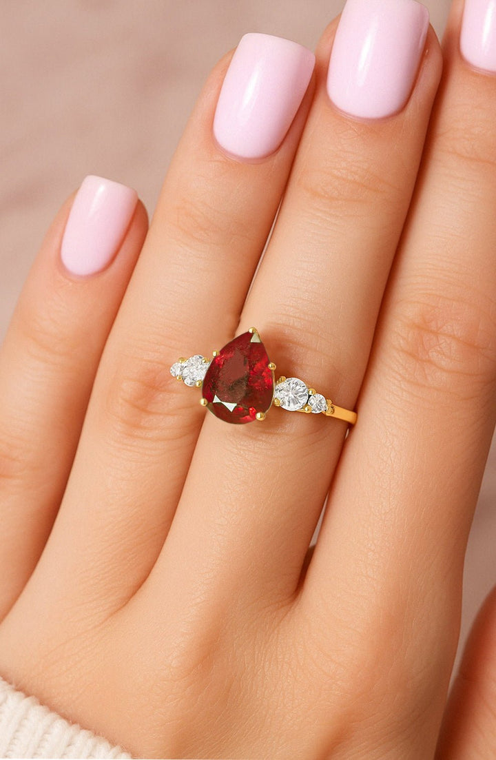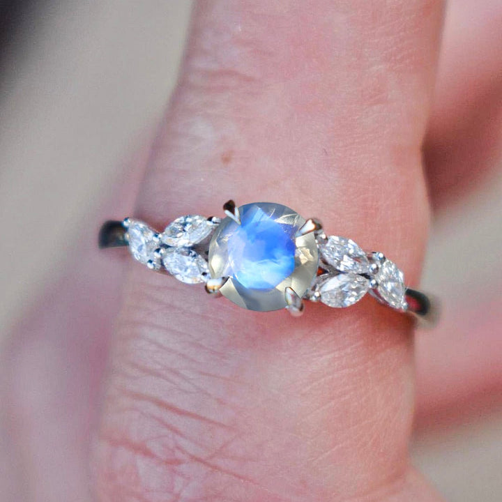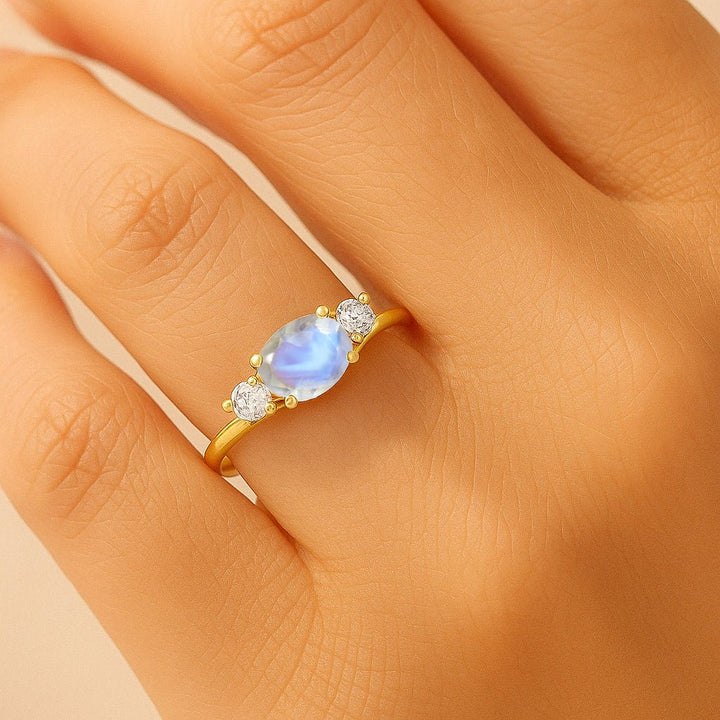 Elegant Moonstone Pear Stone Ring in Gold & Silver