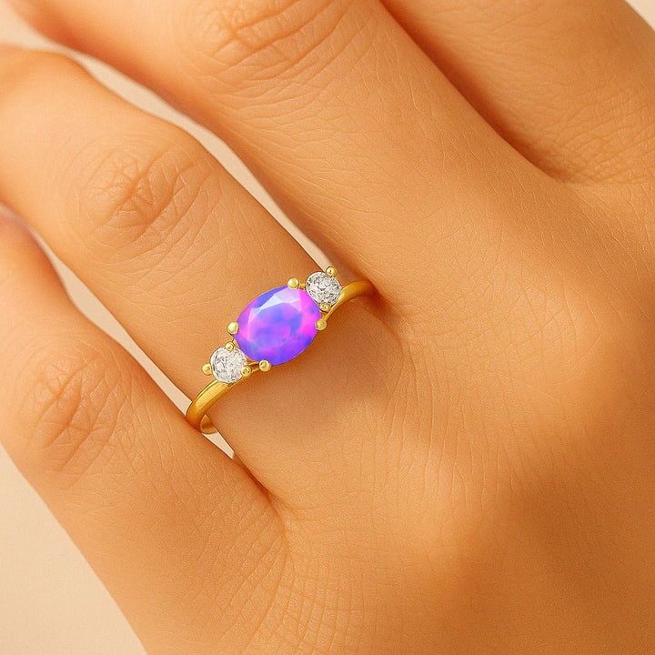 Lavender Opal Three Stone Ring - 7x5 MM Oval Shape