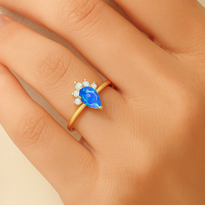 Pear Shape Blue Opal Ring with White Zircon Accents
